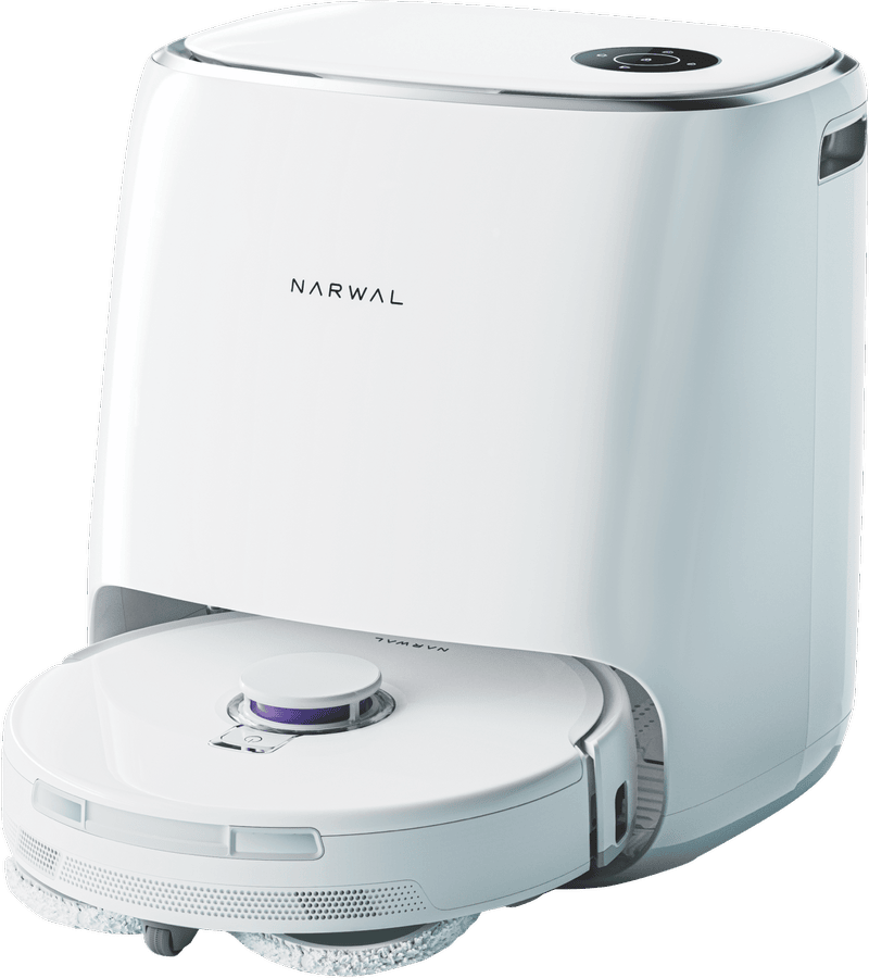 Want to make cleaning a breeze? The Narwal Freo X Ultra Robot Vacuum and Mop is here to help. This smart cleaner tackles both hard floors and carpets with powerful 8200Pa suction. It uses tri-laser sensors to navigate your home, avoiding obstacles and restricted areas. The HEPA filter traps allergens, making it great for homes with pets. You can control it with your voice using Google Assistant, Amazon Alexa, or Apple HomeKit. With a 5200mAh battery, it cleans for hours on a single charge. The base station holds a dust bag, so you don’t have to empty it often. At just 55 decibels, it’s quiet enough to run while you’re home. This white robot measures 350mm wide and 107mm tall, fitting under most furniture. It comes with everything you need to get started, including mop pads and side brushes. Narwal backs it with a 2-year warranty. Part number: YJCC015.