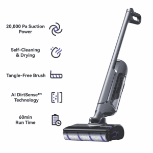 Looking for a hassle-free way to keep your hard floors spotless? The Narwal S20 Pro Wet & Dry Cordless Hard Floor Cleaner is here to help. This nifty gadget tackles both wet and dry messes on timber and tiles, making cleaning a breeze. With its powerful 20,000 Pa suction, it picks up dirt and debris easily. The cordless design lets you move freely around your home without tripping over cords. It’s got a 790ml clean water tank and a 670ml dirty water tank, so you can clean for longer without stopping. Plus, the self-cleaning base means less work for you. At just 4.26kg, it’s light enough to carry around easily. The S20 Pro comes with everything you need to get started, including a vacuum mop, roller brush, and even some detergent. And with a 2-year warranty, you can clean with confidence. The manufacturer’s part number is YJSC003.