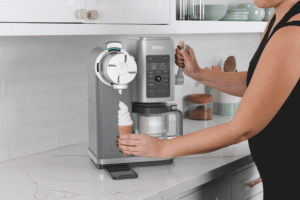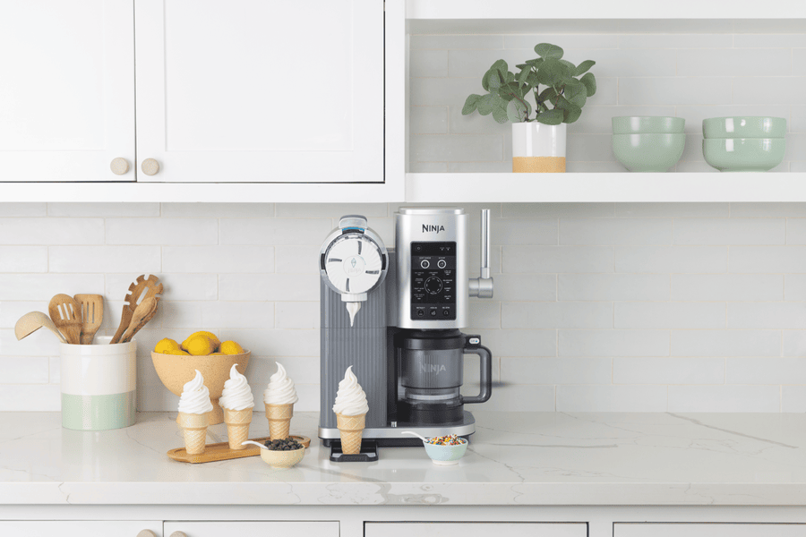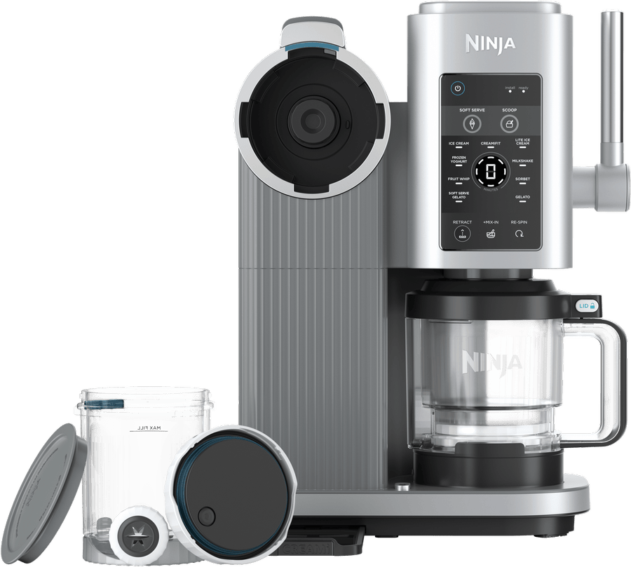 Create soft serve treats at home with the Swirl By Creami ice cream maker, featuring two 470ml tubs for making delicious frozen desserts. This powerful 850W machine offers 13 different programs, including six soft serve options like Ice Cream and Fruit Whip, plus six scoop programs and a Mix-in Program. The Soft Serve Creamify Technology spins at faster speeds to create smooth, creamy textures, while letting you control ingredients for dietary preferences like dairy-free or vegan options. Clean-up is easy with dishwasher-safe tubs, lids, paddle and swirl press. Comes with a 2-year warranty. Model NC701.