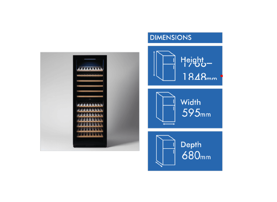 - 430L capacity or up to 169 Bottles