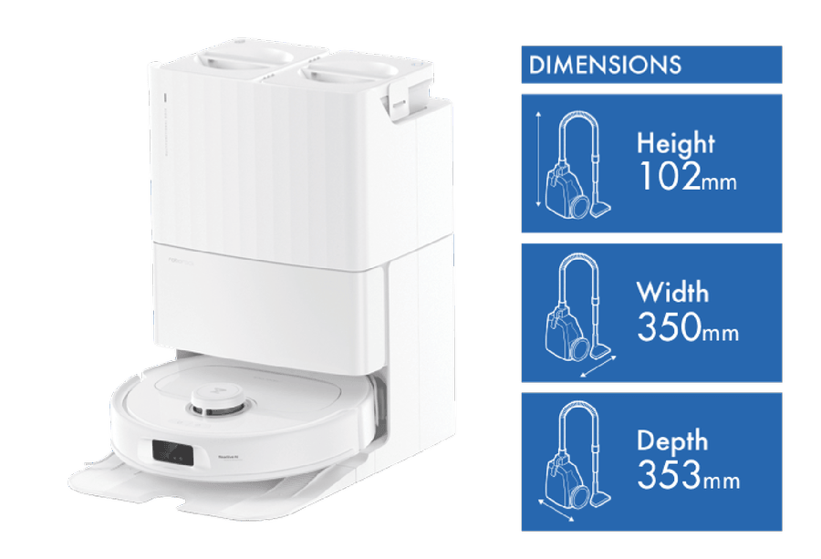 Elevate your cleaning routine to new heights with the Roborock QRevo MaxV Robotic Vacuum. This innovative robot vacuum and mop combo is equipped with advanced features to tackle even the toughest messes on carpets and hard floors alike. The QRevo MaxV harnesses an impressive 7000Pa of suction power, ensuring a deep and thorough clean every time. With PreciSense(R) LiDAR sensor technology, this robotic vacuum navigates your home with precision, effortlessly mapping out the most efficient cleaning path. The generous 330ml dustbin and 80ml water tank allow for extended cleaning sessions, while the 5200mAh lithium ion battery provides up to 180 minutes of uninterrupted cleaning time. Enjoy the convenience of Wi-Fi connectivity, enabling you to control and monitor your Roborock vacuum from your smartphone or smart home devices like Google Assistant, Amazon Alexa, and Apple HomeKit. The multifunctional dock not only charges your robot vacuum but also features a warm air drying function to keep the mop cloth fresh and hygienic. The manufacturer’s part number for this product is RR-QRMV02-03-WHT. Experience the future of home cleaning with the Roborock QRevo MaxV Robotic Vacuum and enjoy a cleaner, healthier living space with minimal effort.