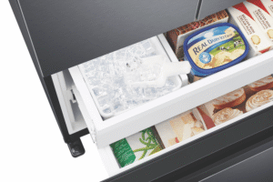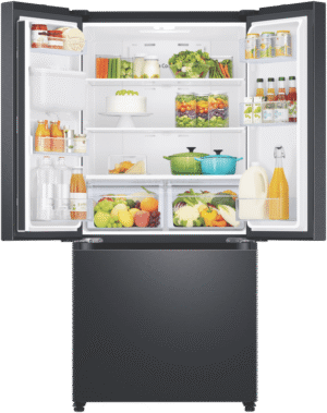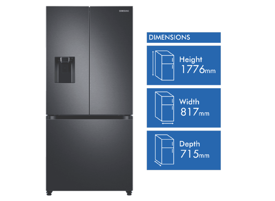 Step up your refrigeration with the sleek, spacious Samsung 495L French Door Fridge. This matte black beauty blends into any modern kitchen while providing ample chilled storage for the whole family. With a total capacity of 495 litres across two roomy compartments, you’ll enjoy 330 litres of fridge space up top and a 165 litre freezer down below. The versatile French door design gives you easy access to all your fresh ingredients and prepped meals, while the water and ice dispenser saves you time and effort. Automatic ice making means you’ll never run out of ice for chilling drinks on hot days. The Samsung fridge is packed with food preserving features like a large crisper drawer that keeps fruit and veg fresh and crisp. An energy rating of 3.5 stars means you can keep energy bills down while enjoying premium cooling performance. With a sleek 817mm width, 1776mm height and 715mm depth, this fridge adds style and convenience to the heart of your home. The manufacturer’s part number for this product is SRF5300BD. Bring home the Samsung 495L French Door Fridge and unlock a world of chilled convenience today.