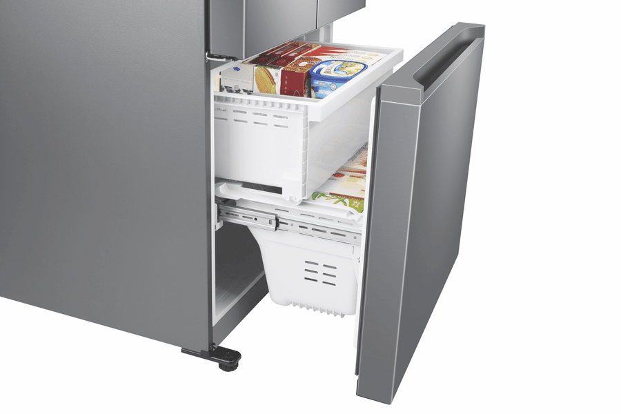 Premium design and excellent functionality come together with the Samsung 495L French Door Refrigerator (SRF5300SD). Keeping your fridge and freezer separately cool is the Twin Cooling Plus technology(1); this feature keeps odours isolated to each area and maintains the perfect temperature and humidity for food preservation. Power Freeze distributes a fast current of cold air into your freezer to quickly chill your frozen food. The Power Cool function similarly blows cold air into the refrigerator cabin to promptly chill food and drinks. Refreshing water is always available without the need of a tap; the built in water dispenser provides refreshing chilled water from the fridge without installation(2). The large capacity door bins allow easy access to large bottles and jugs with compromising on space. Also, the large capacity crispers provide even more space to store your favourite fruit and vegetables. The Auto Ice Maker ensures you have access to a large quantity of ice all year round(3). The exterior of the Samsung fridge comes with an Anti-Fingerprint finish; this prevents left over fingerprints from staying on the outside surface, keeping its high quality aesthetics. Constructed to fit into the Australian Kitchen this French Door Refrigerator can fit within a standard 1800mm high / 900mm wide cavity(4). (1) Based on testing comparing Samsung Twin Cooling Plus with Samsung All Around / Mono Cooling Systems. (2) On demand water from the dispenser is subject to the container being re-filled. Bisphenol A (BPA) is found in polycarbonate plastics and epoxy resins, which are often used in food and beverage containers, and has been linked with possible adverse health effects. (3) On demand ice from the auto ice maker is subject to the unit being plumbed. (4) Fits a standard 1800mm high / 900mm wide cavity. Please review full fridge dimensions to determine suitability.