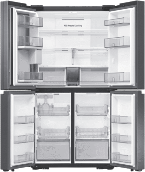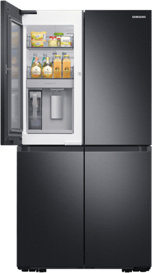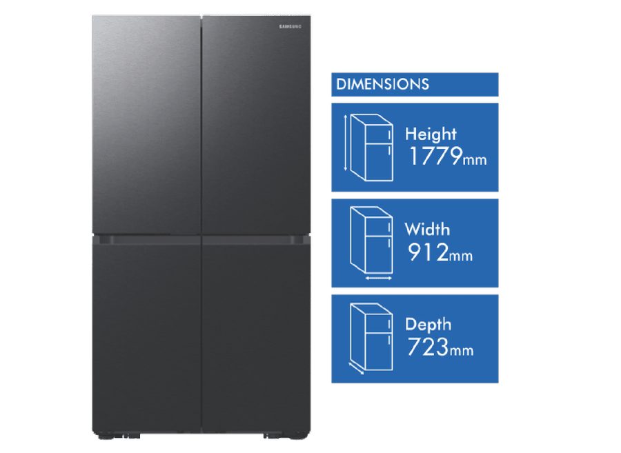 Bring the ultimate in sleek, modern style and convenience into the heart of your home with the Samsung 648L French Door Refrigerator. With a gleaming matte black finish and generous 648 litre capacity across dual fridge and freezer compartments, this refrigerator makes an impressive statement in any kitchen. The auto-fill water pitcher provides chilled water on demand while the integrated ice maker delivers refreshing ice cubes. Dual humidity-controlled crisper drawers keep fruits and veggies garden fresh, and the door-mounted water and ice dispenser grants easy access to chilled water and ice. This energy-efficient refrigerator offers ample storage for large platters and bottles with its roomy door bins. Samsung backs this refrigerator with a 2 year warranty for added peace of mind. With intuitive features and sophisticated style, the Samsung 648L French Door Refrigerator keeps food fresh while complementing your kitchen décor.