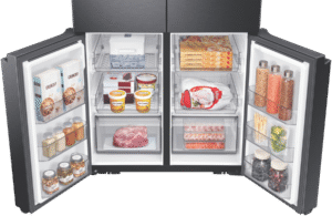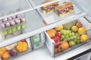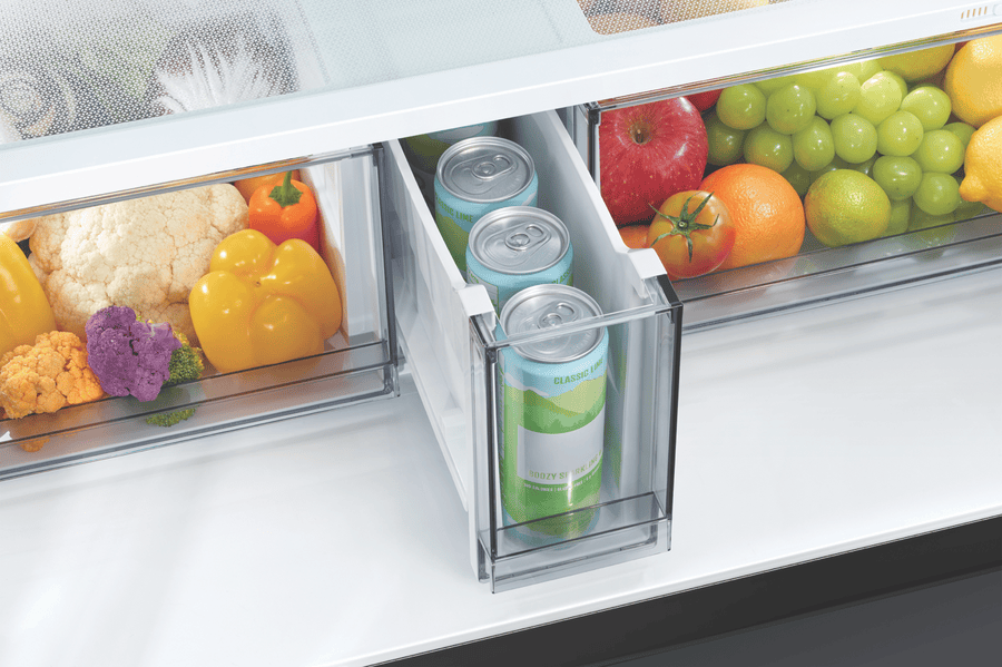 • Big bottle door bins and large crisper for storage, power cool and power freeze,