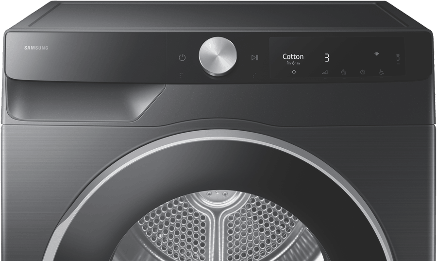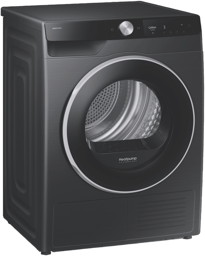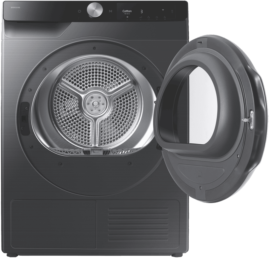 This Samsung 9kg Smart Heat Pump Dryer makes laundry day a breeze with its impressive 9-star energy rating that keeps your power bills in check. The AI Dry feature intelligently senses moisture levels across 4 dryness settings, while 17 different programs handle everything from delicates to bedding. Connect to Samsung SmartThings to control your dryer from your phone, and enjoy practical features like Damp Alert and Wrinkle Prevent. The reversible door lets you set it up to match your laundry layout, and it pairs perfectly with the Samsung WW90DG6U34LB washing machine. Child Lock keeps curious little hands safe, while the sleek black finish adds a modern touch to your home. Comes with a 2-year warranty for peace of mind. Model DV90T6440LB.