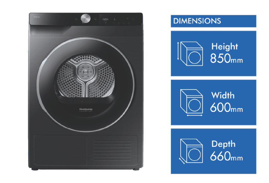 - Heat pump dryer with 9kg capacity