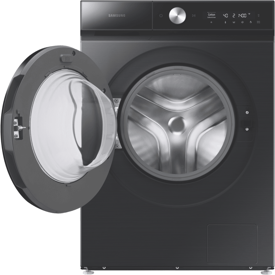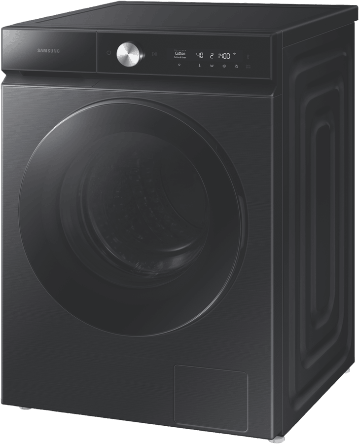 Revolutionize your laundry with the new Samsung 9kg Bespoke Front Load Washer. With a generous 9kg capacity, this front loader effortlessly handles multiple loads of washing for busy families. The sleek Black finish and customizable Bespoke design let you coordinate any contemporary laundry. Powered by AI technology, the washer optimizes cycles using Sensor Wash to detect fabric type and load size. It features BubbleWash to saturate clothes for a deeper clean, while Vibration Reduction+ stabilizes operation. With the Samsung SmartThings App, you can monitor and control your washer remotely. An array of cycles tackle every fabric and stain. The Super Speed cycle finishes a full load in just 39 minutes, while Steam Sanitize eliminates 99.9% of germs and bacteria. Activewear, baby clothes, and other delicate fabrics are gently washed in cold water. With a 5 star energy rating and 4 star water rating, this front loader saves resources while delivering spotless results. The intuitive AI Wash recommends the most efficient settings for each load. Rated at a quiet 55 decibels, the washer operates silently so you can run it any time. Bring innovation into your laundry room with the Samsung 9kg Bespoke Front Load Washer. The manufacturer’s part number for this product is WW90BB944DGB.