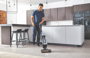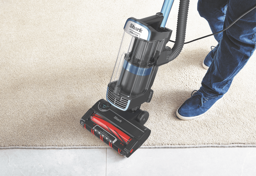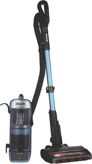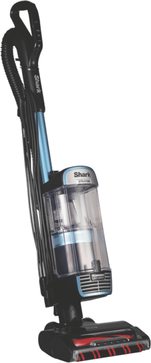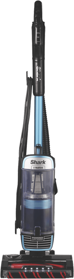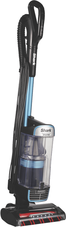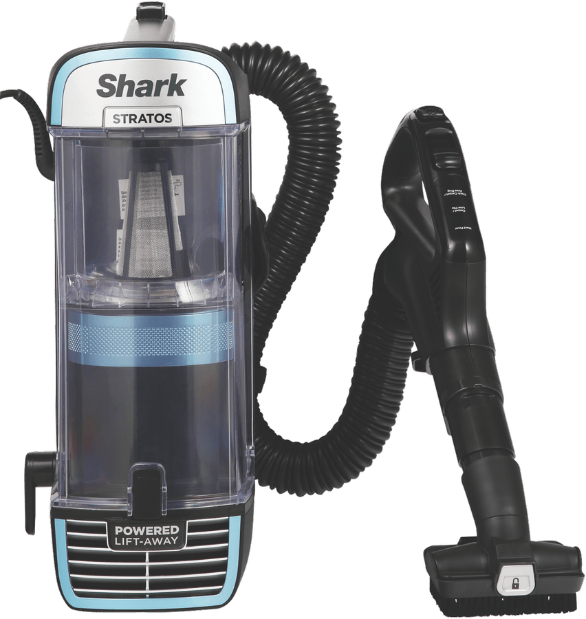 Clean floors and upholstery with ease using the Shark Stratos XL Pet Pro Lift-Away Upright Vacuum in navy blue. This powerful 800-watt bagless upright vacuum makes quick work of embedded dirt, dust and pet hair on carpets, rugs and hard floors throughout your home. The self-cleaning brush roll efficiently removes embedded debris while the HEPA and foam filters trap dust and allergens inside the 1.3-litre dust cup. Detach the canister to easily clean hard-to-reach areas like stairs and upholstery. The crevice tool, multi-surface tool and odour neutralizer help tackle messes in every room. Shark backs this vacuum with a 2-year warranty. The manufacturer’s part number for this product is AZ913. Bring home the Shark Stratos XL Pet Pro today for a deeper clean.
