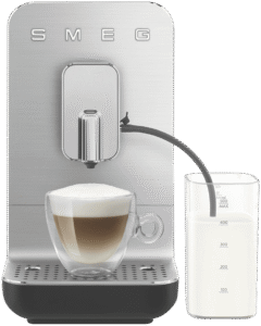 Upgrade your morning brew with the sleek and stylish Smeg Bean To Cup Coffee Machine in matte black. This automatic coffee maker is designed to simplify your coffee routine while delivering barista-quality results. With a powerful 1350-watt motor and 19 bar pump pressure, you can expect rich, full-bodied espresso every time. The built-in grinder ensures the freshest flavor, while the adjustable settings let you customize your coffee just the way you like it. Whether you’re in the mood for a classic espresso, a creamy cappuccino, or a frothy latte macchiato, this machine has you covered with its easy-to-use ‘One Touch’ function. Plus, the generous 1.4L water tank means fewer refills between brews. Crafted with a durable plastic body and an elegant aluminum front panel, this coffee machine is built to last. And with a 2-year manufacturer’s warranty, you can enjoy your daily coffee with peace of mind. Elevate your coffee game with the Smeg BCC13BLMAU Bean To Cup Coffee Machine.