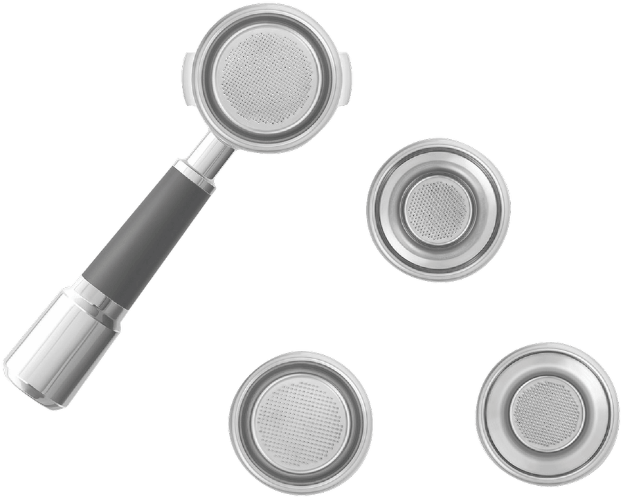 • Uses ground coffee for single or double shots