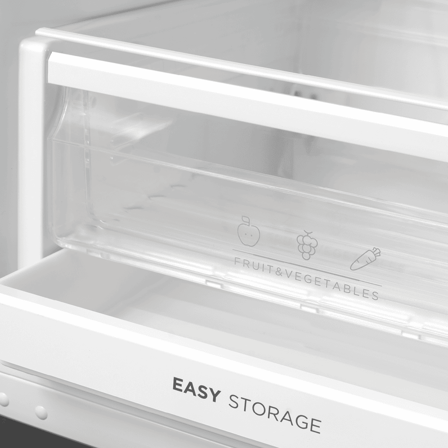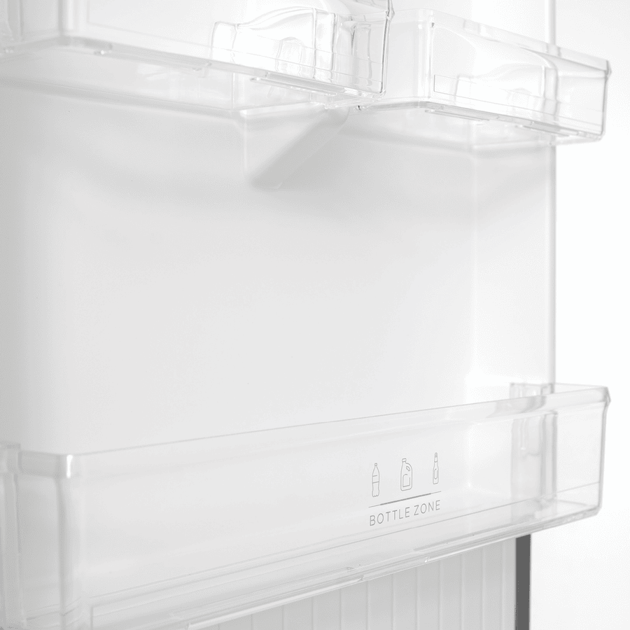 - Reversible door, flex-zone drawer, scalable shelving,