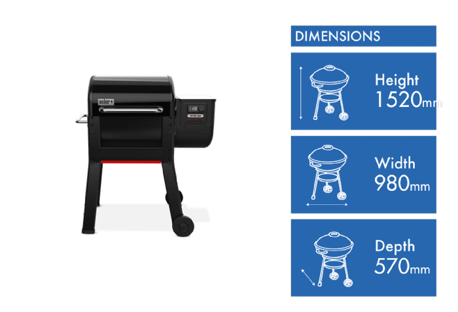 Brand:WeberModel Number:1500826Power:CordedTotal Cooking Area:3820cm2Type:Pellet SmokerFamily:Weber SmoqueColour:Black