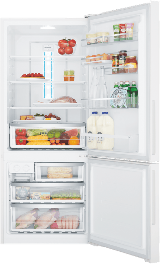 Bring home the stylish and spacious Westinghouse 425L Bottom Mount Refrigerator to keep your food fresh for longer. With its bottom freezer configuration, this fridge offers ample storage for all your chilled and frozen essentials. The generous 425 litre total capacity includes a sizeable 300 litre fridge compartment and a 125 litre freezer, providing the flexibility to store everything from produce to party platters. Adjustable glass shelving, a crisper drawer and door storage make it easy to organize the interior to suit your needs. Features like the FlexStor door storage system, SpillSafe shelves, a twist ice dispenser and LED lighting ensure this refrigerator offers convenience along with capacity. The multi-flow air delivery system maintains optimal temperature control and quick chill functionality enables rapid cooling when required. Finished in white, this refrigerator will complement your kitchen beautifully while providing the storage and performance you need. The manufacturer’s part number for this product is WBE4302WC-R. Discover how this quality Westinghouse refrigerator can upgrade your household food storage today.