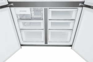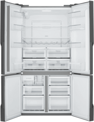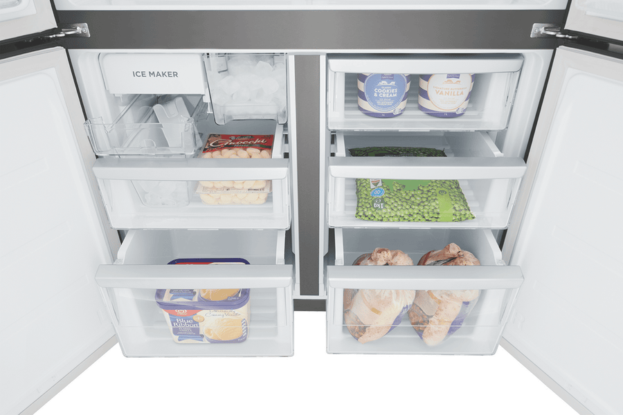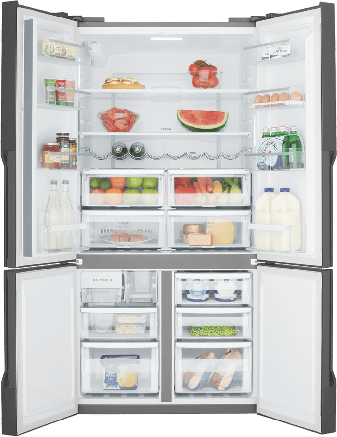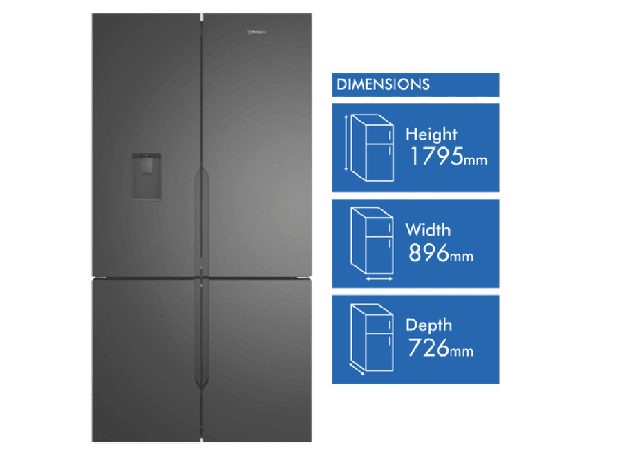 Experience the ultimate in refrigeration convenience with the sleek, matte black Westinghouse 564L French Door Refrigerator. This spacious fridge offers ample storage for the weekly shop in its generous 564 litre total capacity, with dedicated spaces for fresh foods. The versatile French door design allows easy access to contents, while the bottom freezer drawer stores frozen foods separately. Smart features like the in-door water dispenser, multi-flow airflow system and spill-safe glass shelves make everyday use effortless. Keep food fresher for longer with the FreshSeal crisper and Fresh Drawers. Ice is always on hand thanks to the internal Icemaker. With its stylish finish, generous capacity and clever storage, this Westinghouse refrigerator streamlines meal prep and puts quality cooling power at your fingertips. The manufacturer’s part number for this product is WQE5650BA. Check out this French door fridge today for upgraded refrigeration in your home.