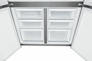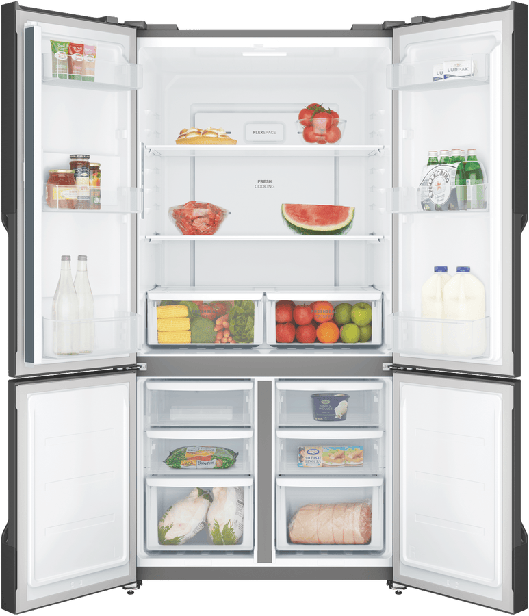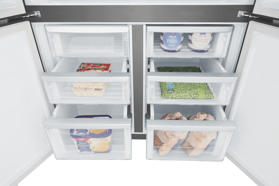Tired of your fridge being a cluttered mess? The Westinghouse 564L Quad Door Refrigerator (WQE5600BB) is here to help. With its sleek matte black finish and generous 564L capacity, you’ll have plenty of room to keep everything organized. The French door design makes it easy to grab what you need, while the multi-flow airflow system keeps your food fresh. Plus, the FreshSeal Crisper with manual humidity control ensures your fruits and veggies stay crisp. And when it’s time for a cool drink, just grab some ice from the handy sphere ice tray. This fridge is built to last, with SpillSafe glass shelves and a 2-year manufacturer’s warranty for peace of mind.