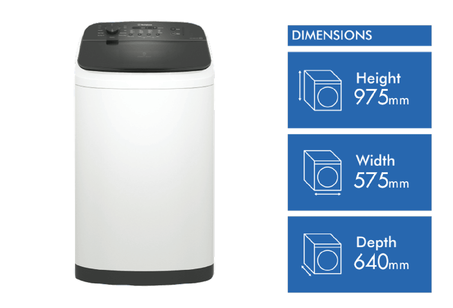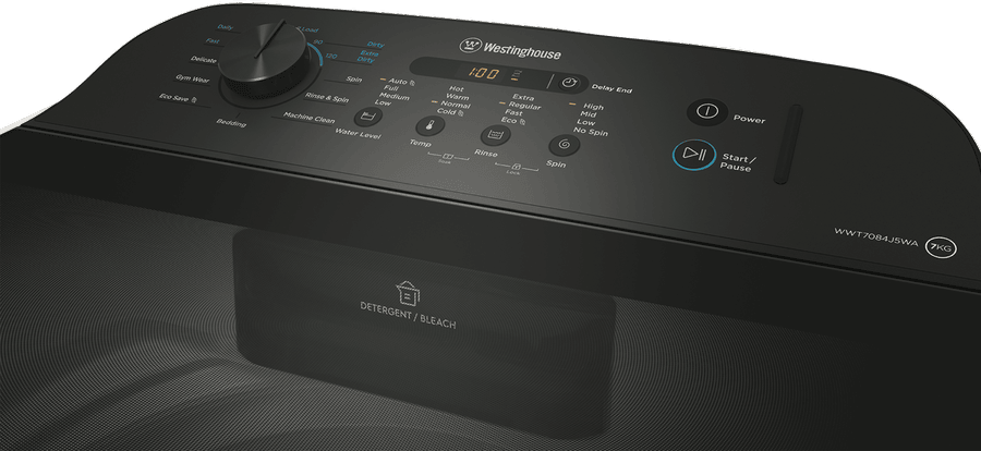 Take the hassle out of laundry day with the Westinghouse 7kg Top Load Washer. This affordable top loader makes it easy to keep your family’s clothes clean, spinning at a fast 800rpm to leave less moisture in clothes after each cycle. With a generous 7kg capacity, you can wash more in each load, saving time and water. The Eco Save program uses only 85 litres a wash for efficient, environmentally-friendly washing. Choose from 12 versatile programs to suit any fabric, from Delicate through to Heavy Duty 120 minutes. Options like PreMix+ technology let you pre-mix detergent and softener for even distribution, while the easy-to-use control panel, child lock and see-through lid make operation safe and simple. Enjoy the peace of mind of a 2 year warranty with this reliable top loading washing machine. The manufacturer’s part number for this product is WWT7084J5WA. Give your laundry routine an upgrade with the Westinghouse Top Loader today.