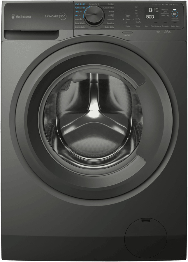 Discover the ultimate laundry solution with the Westinghouse 9kg-5kg Combo Washer Dryer. This innovative appliance seamlessly combines washing and drying capabilities, making laundry day a breeze. With a generous 9kg washing capacity and 5kg drying capacity, this combo washer dryer is perfect for households of all sizes. The sleek grey finish adds a touch of sophistication to any laundry room. Enjoy a wide range of 15 washing programs, including delicate, mixed, fast 15, daily 39, full load 60, extra dirty, bedding, and gym wear, catering to all your laundry needs. The washer dryer also offers convenient options like rinse hold, extra rinse, plus hygiene, delay end, spin selection, wash temperatures, and variable spin speeds up to 1200rpm. The inverter motor ensures quiet and efficient operation, while the 3XL drum opening allows for easy loading and unloading. Save your favorite programs for quick access, and take advantage of the pause and add button for added flexibility. With a 4-star WELS water rating and 5-star wash energy rating, this combo washer dryer is both water and energy efficient. The manufacturer’s part number for this product is WWW9024M5SA. Experience the convenience and performance of the Westinghouse EasyCare combo washer dryer in your home today.