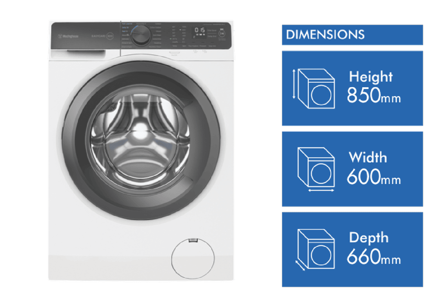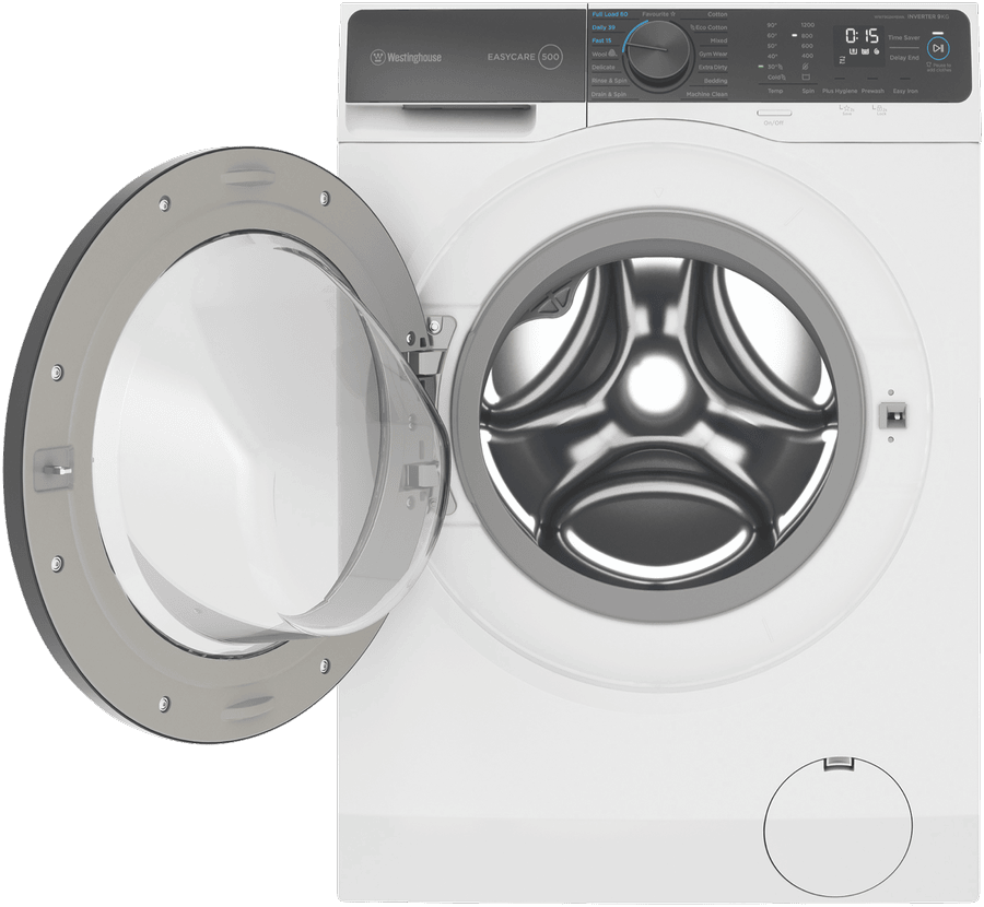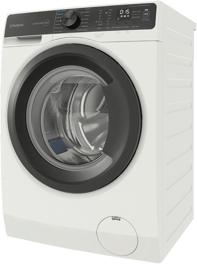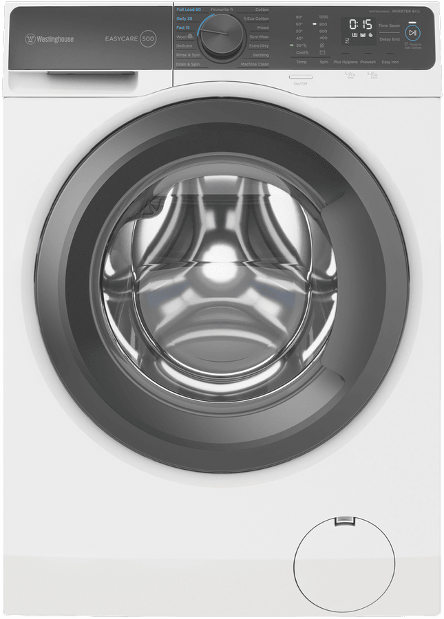 The sleek white Westinghouse EasyCare 9kg front-loading washing machine delivers powerful cleaning performance for your laundry needs. With a 4-star energy rating and 4-star water rating, this washing machine is designed for efficient operation. The large 9kg capacity enables you to wash more in each load, saving you time and energy. Choose from 15 diverse wash programs like Mixed, Delicate and Eco Cotton to handle every fabric type with care. The quick 15 minute Fast program lets you speed through smaller loads when you’re pressed for time. For tough stains, turn to the robust Extra Dirty cycle that tackles even the most stubborn dirt. The intuitive control panel with electronic touch buttons makes operation a breeze. With convenient features like Delay End, Add Clothes and Child Lock, you stay in control of each wash. Harnessing a powerful 1200 RPM maximum spin speed, this washer removes more water from your clothes to cut down drying time. The stainless steel drum is gentle on fabrics while still giving a thorough clean. Backed by Westinghouse’s 2 year warranty for added peace of mind. Give your laundry an efficient, high performing clean with the Westinghouse EasyCare 9kg Front Load Washer. The manufacturer’s part number for this product is WWF9024M5WA. Check out this washing machine today for your home.